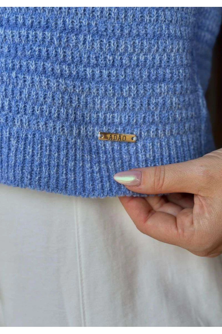 Blusa Feminina de Tricot com Gola Canelada e Manga Longa - Azul