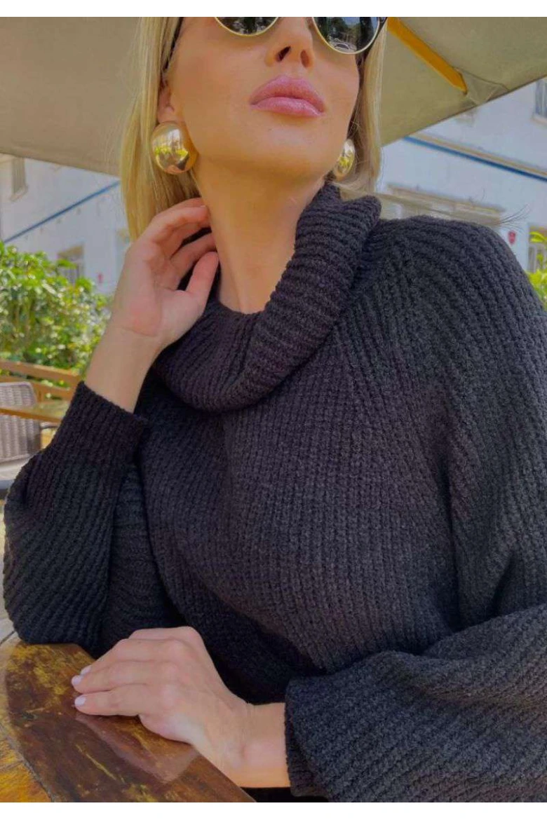 Poncho de Tricot Feminino com Caimento Solto - Preto