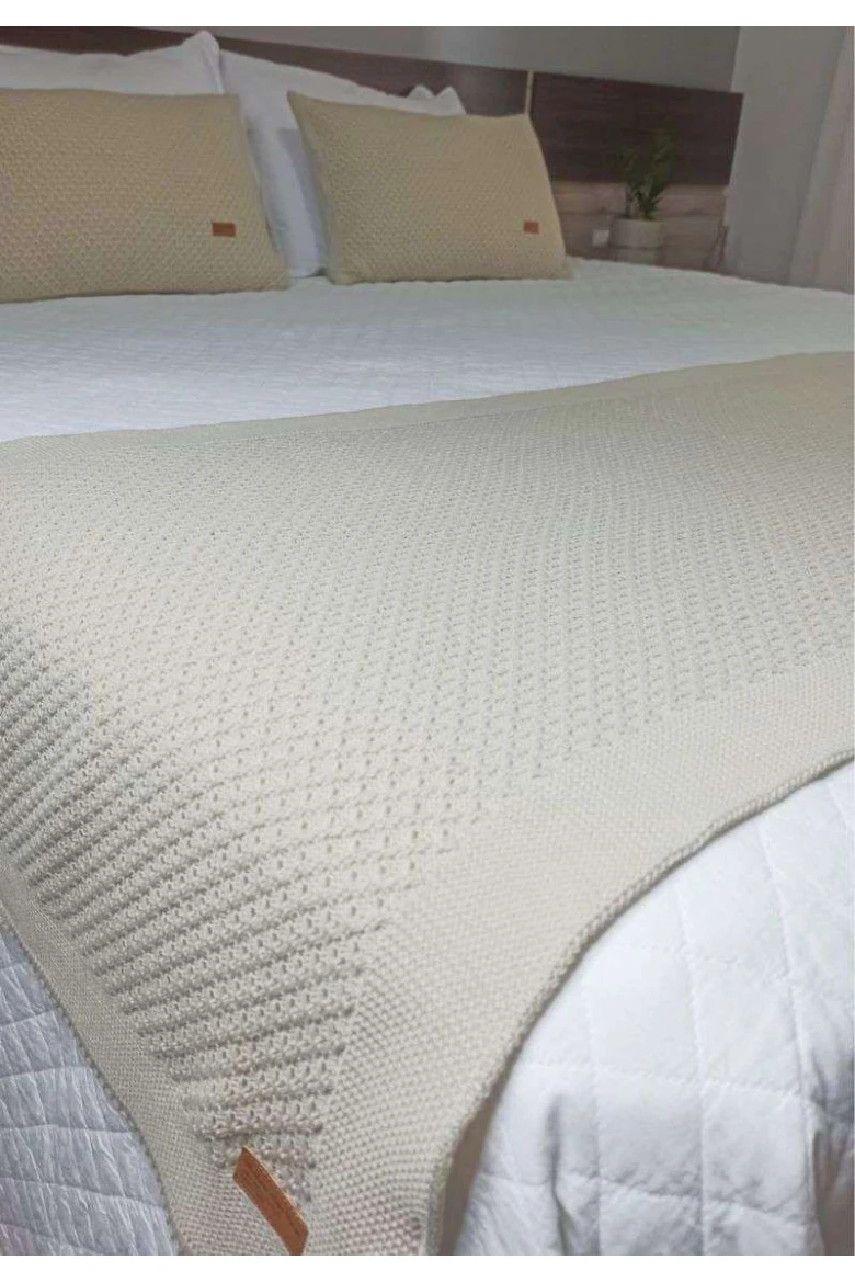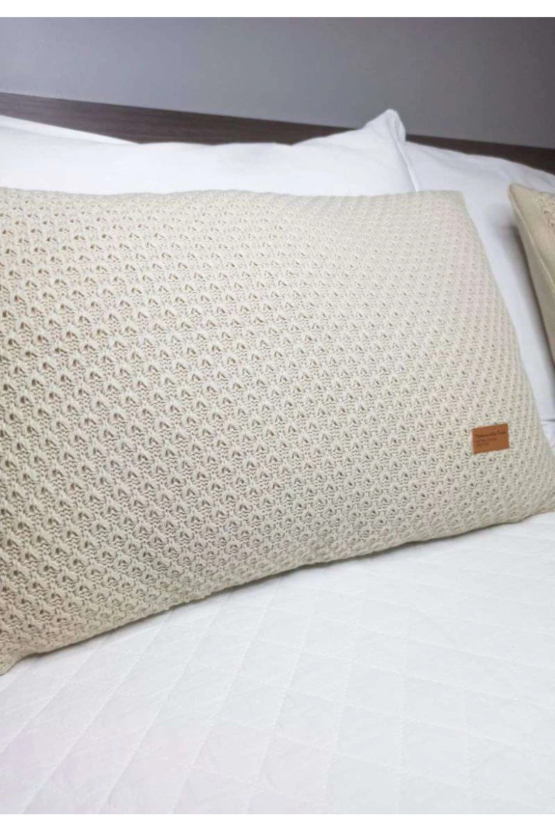 Kit Peseira Solteiro e Almofada em Tricot Ponto Aran - Bege