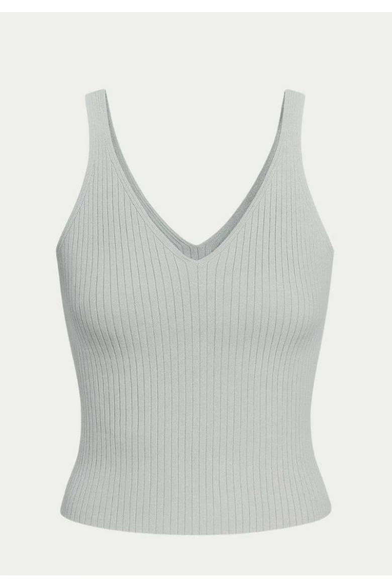 Regata de Tricot Canelada Feminina com Decote V - Verde água